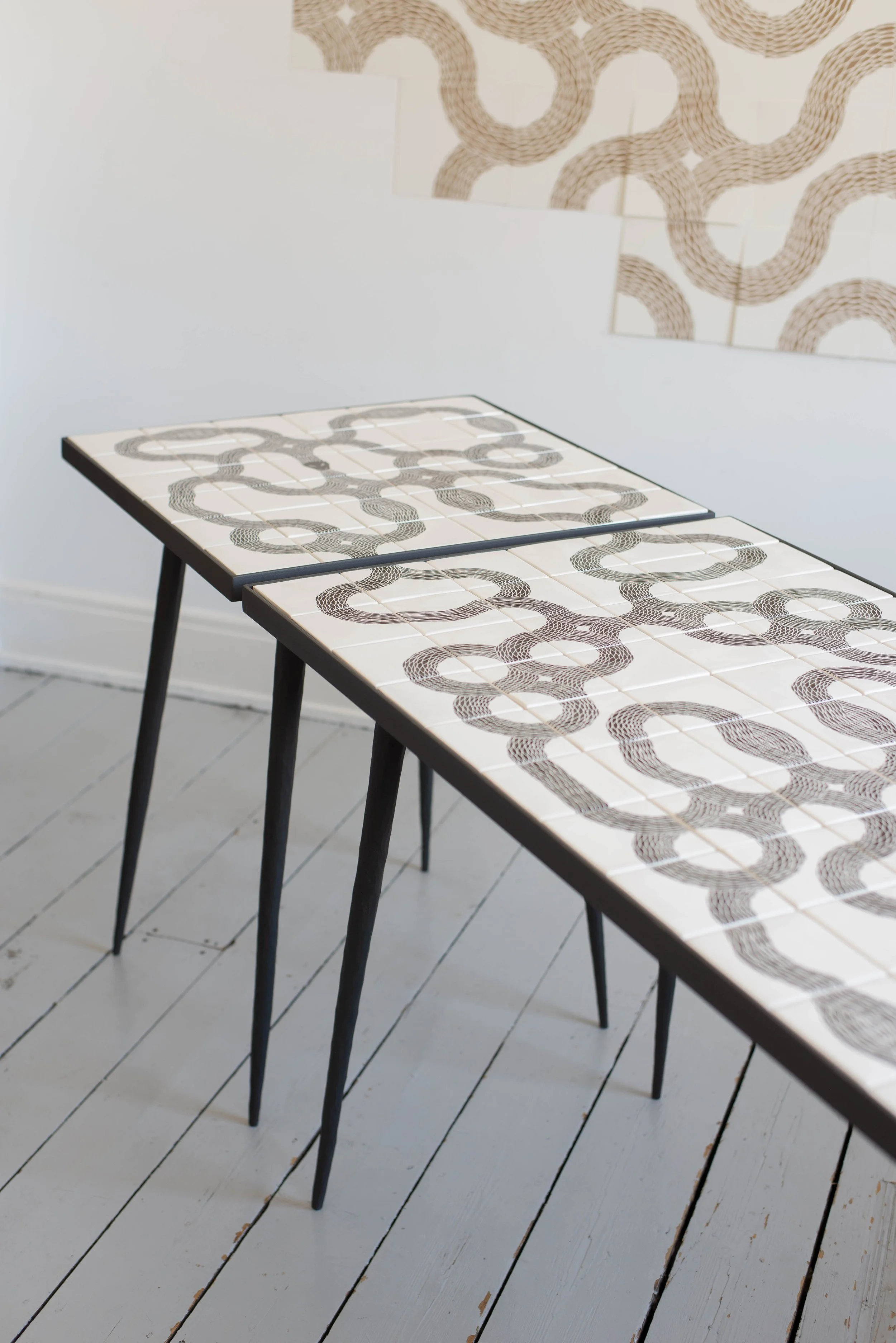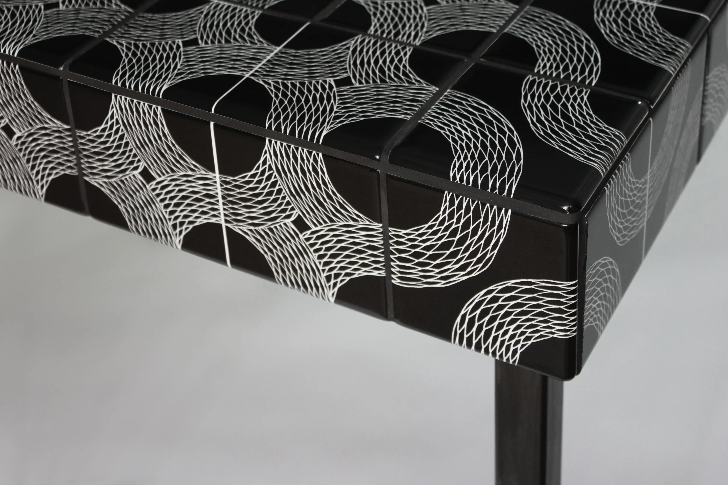 Peter's handcrafted furniture combines elegance and innovation. Infused with his captivating Ouroboros tile designs, each piece resonates with timeless symbolism and meticulous craftsmanship. His furniture pieces are fully bespoke and tell a story of eternal interconnectedness and possibility.